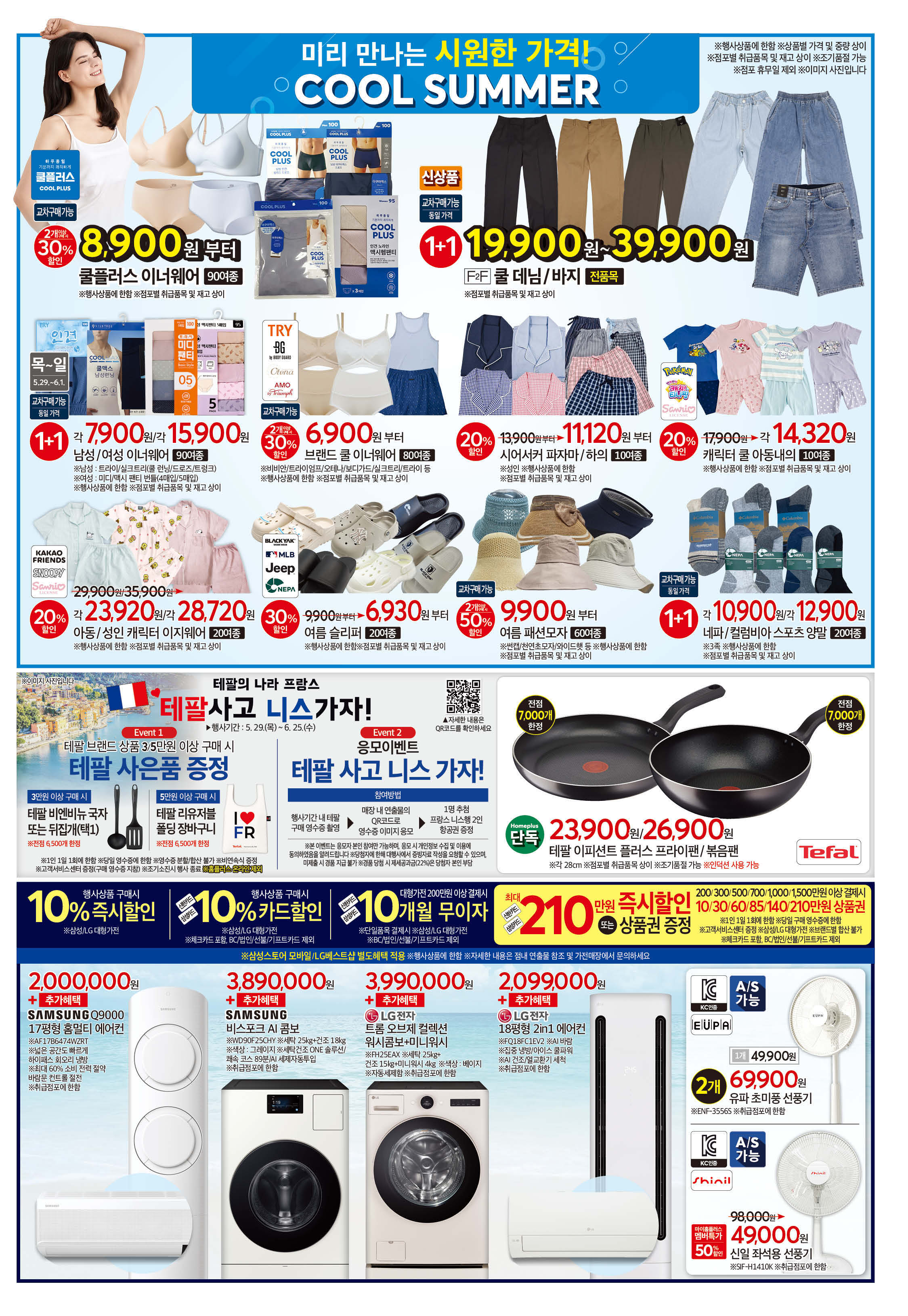 홈플러스 사페이지 칠대카드. 신한. 삼성. 롯데. 엔에이치농협. 케이비국민. 우리. 하나카드. 체크카드 포함. 비씨. 법인. 선불. 기프트카드 제외. 행사상품에 한함. 상품별 가격 및 중량 상이. 점포별 취급품목 및 재고 상이. 조기품절 가능. 점포 휴무일 제외. 첫번째 상품입니다. 안사면 손해. 애경 세탁세제 균일가 육종을 각 사천구백원에 판매합니다. 리큐 리필 또는 울샴푸 이종 또는 르샤트라 섬유유연제 리필 삼종. 취급점포에 한함. 두번째 상품입니다. 세제류 일백육십여종을 사천구백원부터 이만구천구백원에 판매합니다. 두개이상 구매시 오십오퍼센트 할인. 동일브랜드에 한해 교차구매 가능. 행사상품에 한함. 취급점포에 한함. 세번째 상품입니다. 신상품. 홈플러스 단독. 편백 물걸레 청소포 또는 정전기 청소포 사종을 각 이천원에 판매합니다. 편백 물걸레 표준형 이십오매 또는 대형 이십매. 정전기 표준형 육십매 또는 대형 오십매. 취급점포에 한함. 네번째 상품입니다. 하나사면 하나 더. 모나리자 또는 잘풀리는집 화장지를 이만오천구백원 또는 삼만삼천구백원에서 할인하여 이만구백원 또는 이만칠천구백원에 판매합니다. 이십칠미터 삼십롤 세겹. 나무이야기 또는 도톰한 볼륨핏. 취급점포에 한함. 다섯번째 상품입니다. 홈플러스 시그니처 생활용품 이백오십여종을 일천구백구십원부터 일십오만사천원에서 최대 팔십퍼센트 할인하여 구백구십원부터 육만천육백원에 판매합니다. 프라이팬. 도자기. 수저. 쟁반. 머그. 필터샤워용품. 타월. 행거 등. 행사상품에 한함. 취급점포에 한함. 조기품절 가능. 일부 주방용품은 마이홈플러스 회원에 한함. 여섯번째 상품입니다. 지퍼락 전품목을 삼천육백원부터 일만구천사백원에서 마이홈플러스 멤버특가로 사십퍼센트 할인하여 이천백육십원부터 일만천육백사십원에 판매합니다. 취급점포에 한함. 일곱번째 상품입니다. 덴비 전품목을 칠천구백원부터 일만사천구백원에 판매합니다. 스튜디오 블루코발트 또는 그레이. 엘레멘츠 시리즈. 취급점포에 한함. 여덟번째 상품입니다. 신상품. 아비노 화장품 균일가 사종을 각 칠천구백원에 판매합니다. 모이스춰라이저 오십밀리리터. 트리플 오트세럼 삼십밀리리터. 나이트크림 오십밀리리터. 클렌저 이백밀리리터. 취급점포에 한함. 아홉번째 상품입니다. 하나사면 하나 더. 마미포코 기저귀 십여종을 일만팔천구백원부터 사만삼천구백원에 판매합니다. 동일가격에 한해 교차구매 가능. 행사상품에 한함. 취급점포에 한함. 열번째 상품입니다. 하나하면 하나 더. 펫 간식 또는 사료 일백여종을 일천오백원부터 삼만사천원에 판매합니다. 동일가격 및 동일브랜드에 한해 교차구매 가능. 행사상품에 한함. 취급점포에 한함. 일부 상품은 조기 품절될 수 있으며 실제 상품과 다를 수 있습니다. 모든 상품의 행사 내용은 취급점포에 한합니다. 일부 상품의 행사기간은 전단 적용기간과 다를 수 있습니다. 전단지상 가격 또는 문안이 잘못된 부분은 매장내에서 정정고지하여 판매하오니 양해바랍니다. 홈플러스 온라인과 전단지 상의 가격 및 혜택은 상이할 수 있습니다. 주류는 성인에 한하여 오프라인 매장에서만 판매. 십구세 미만 청소년에게 술 판매 금지하고 있으며 온라인 구매는 불가능합니다. 지나친 음주는 뇌졸중. 기억력 손상이나 치매를 유발합니다. 임신 중 음주는 기형아 출생 위험을 높입니다. 전단 적용기간. 이천이십오년 십이월 십일일 목요일부터 이천이십오년 십이월 십칠일 수요일까지. 칠일간. 정기 휴무 점포 휴무일 제외.